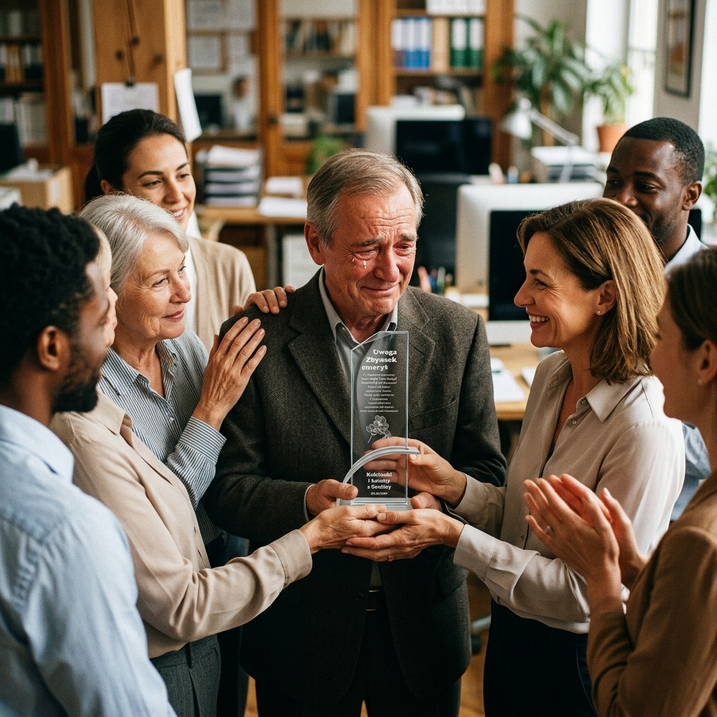 PREZENT Pamiątka Nagroda Statuetka Dla Emeryta Emerytki Na Emeryturę zmiana pracy awans Gadżet - 0105