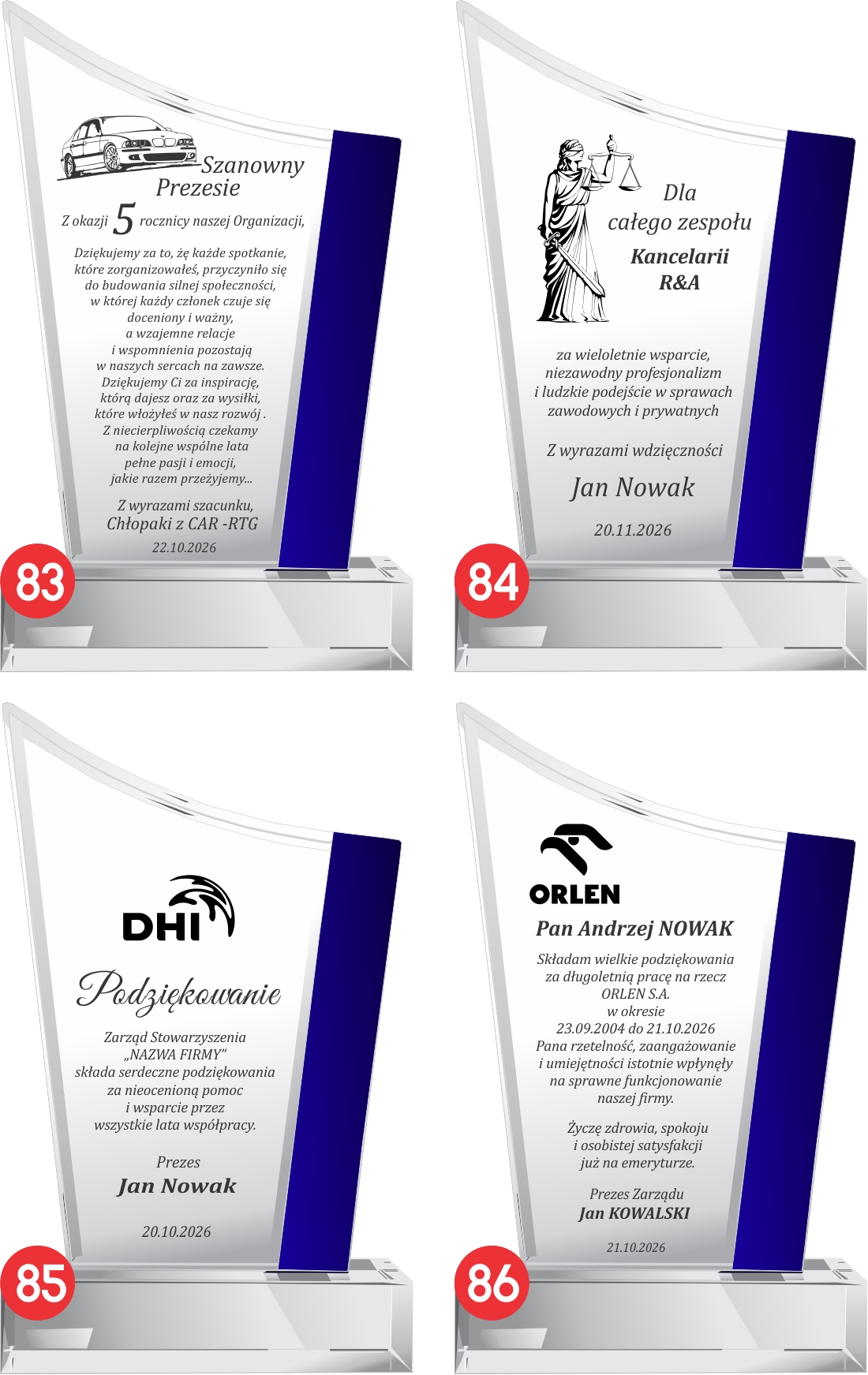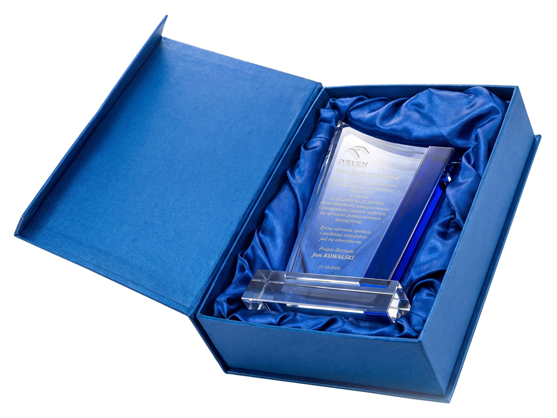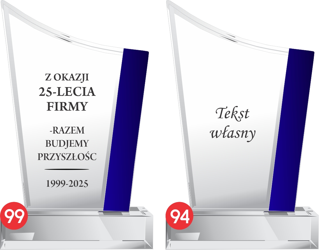 Ta szklana statuetka to eleganckie połączenie nowoczesnego designu z prestiżem, stworzone, by celebrować kluczowe momenty w życiu zawodowym. Wykonana z grubego, szlifowanego szkła o wysokiej przejrzystości, stanowi idealne tło dla personalizowanego graweru, który nadaje całości unikatowy charakter. Jest to doskonały wybór, aby w godny sposób pogratulować pracownikowi awansu lub docenić jego wkład w rozwój struktur firmy. Jako nagroda korporacyjna buduje lojalność i motywuje zespół, natomiast podczas jubileuszy staje się namacalnym symbolem wieloletniej historii sukcesów organizacji. Nowoczesna technika grawerowania laserowego gwarantuje, że logotypy i dedykacje pozostaną niezmienne oraz czytelne przez dekady.
